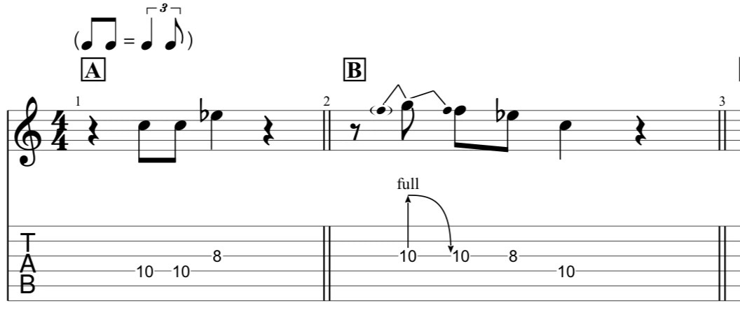 フレーズA:2拍目からスタート(4拍目から始めてもOK)